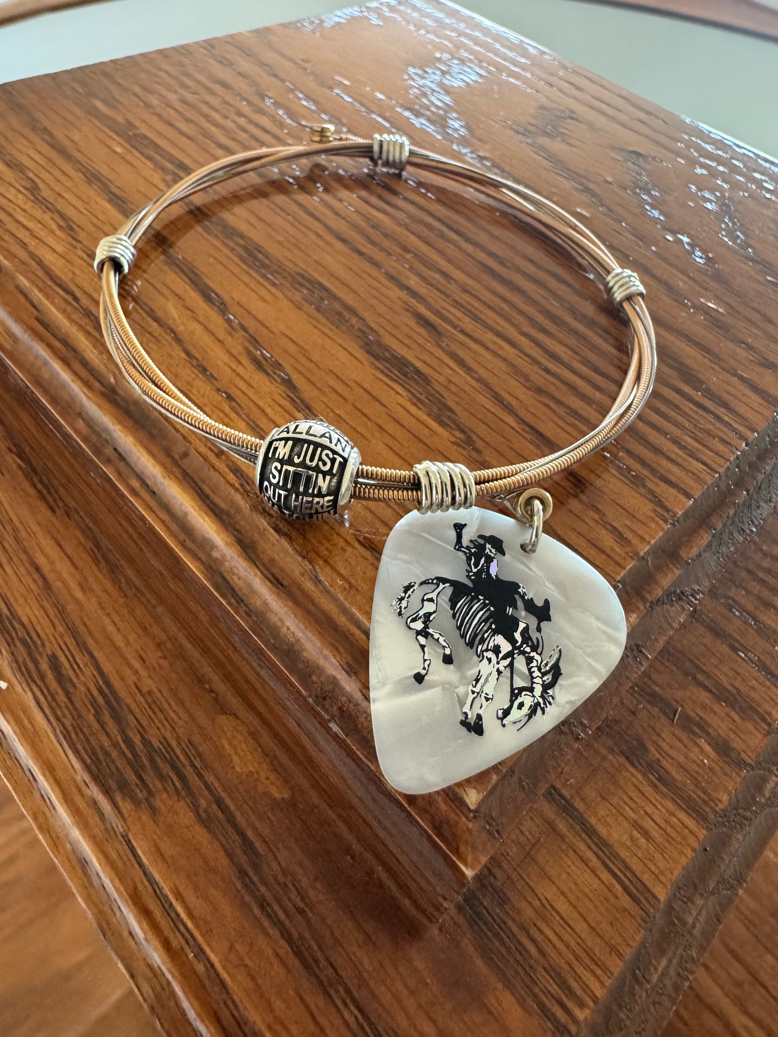 "Watching Airplanes" lyric bead on a bangle made by guitar strings that were played at a live concert.