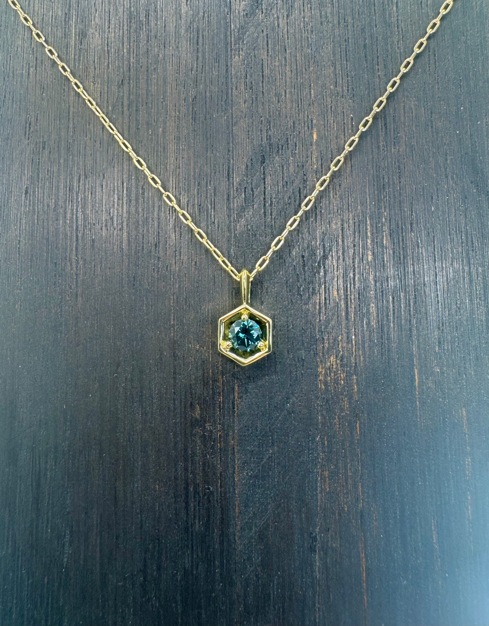 Sapphire is 5.2mm and .61 Carats and has a beautiful array of colors from blue to green depending on the lighting