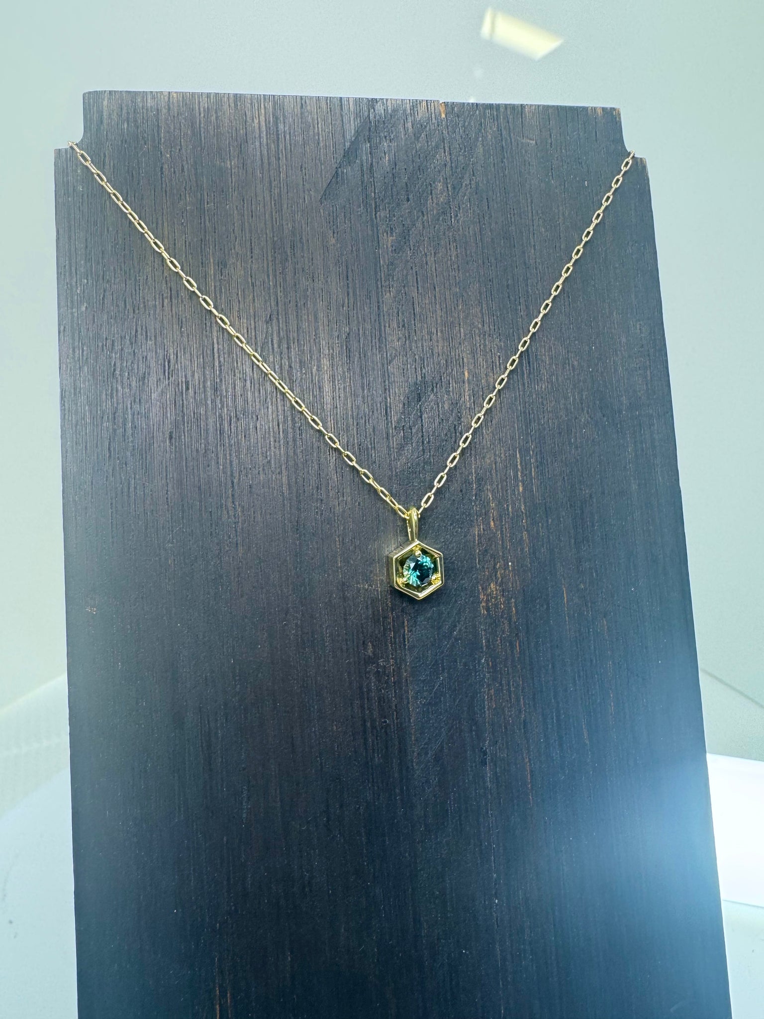 Special cut parti sapphire set in an solid 18K yellow gold hex